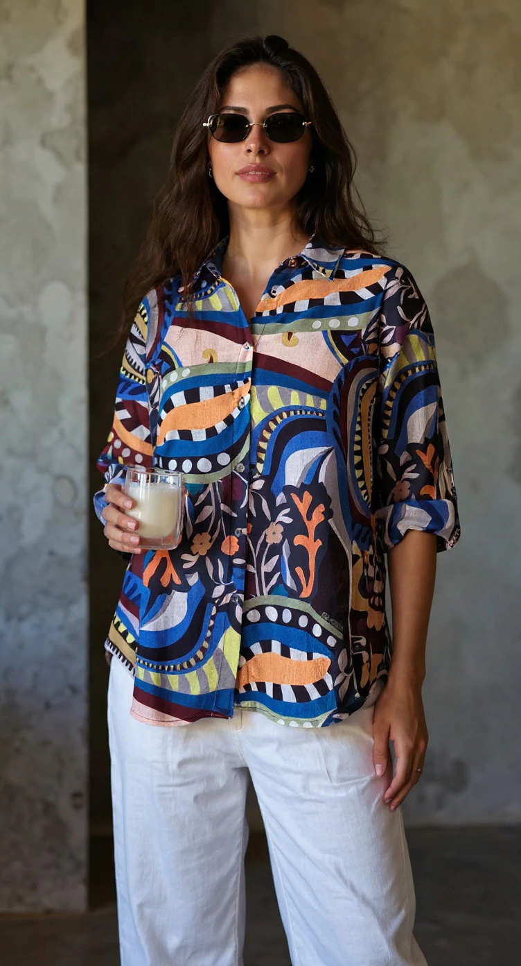 Su diseño versátil la convierte en tu aliada para múltiples ocasiones: desde la oficina hasta la playa sobre tu traje de baño, o en una noche fresca de verano. Una pieza que combina el espíritu canchero con un toque de sofisticación artística.